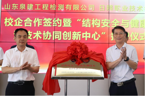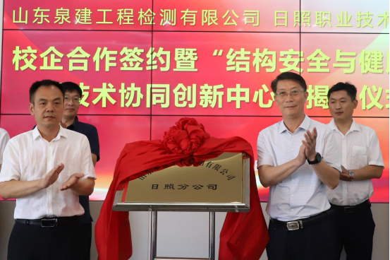 NEWS山東泉建工程檢測(cè)公司與日照職業(yè)技術(shù)學(xué)院共建“結(jié)構(gòu)安全與健康監(jiān)測(cè)技術(shù)協(xié)同創(chuàng)新中心”、暨泉建公司日照分公司揭牌儀式順利進(jìn)行